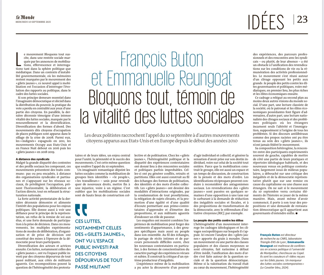 – Tribune de François Buton et Emmanuelle Reungoat dans Le Monde, le 9 septembre 2025. A lire ICI.