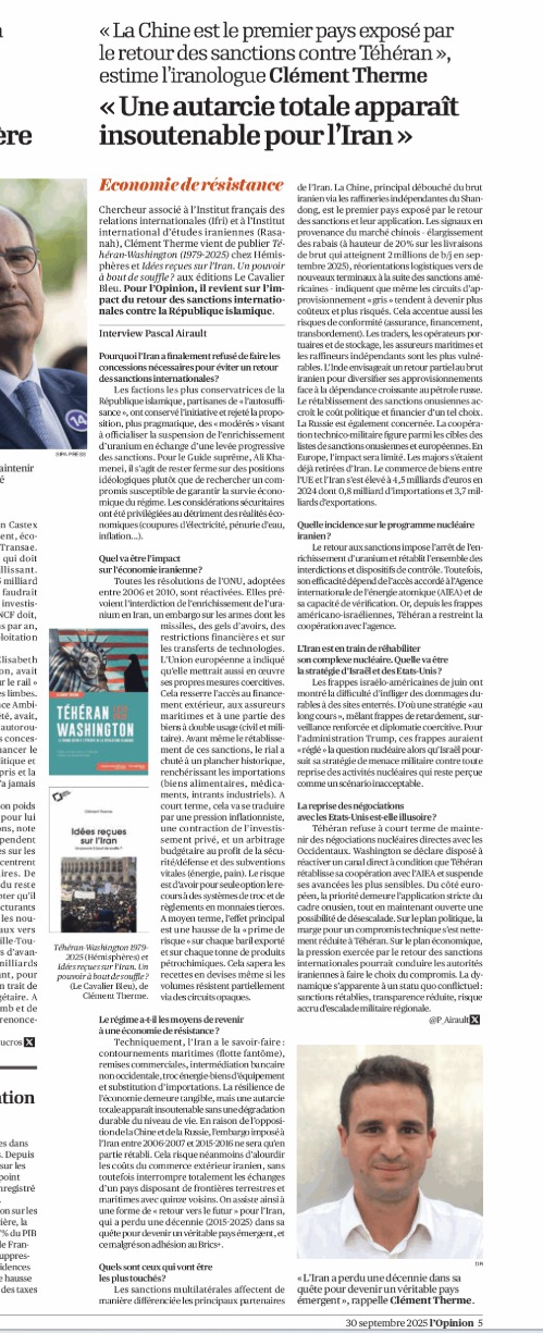– Interview de Clément Therme dans L’Opinion, le 30 septembre 2025. A lire ICI.